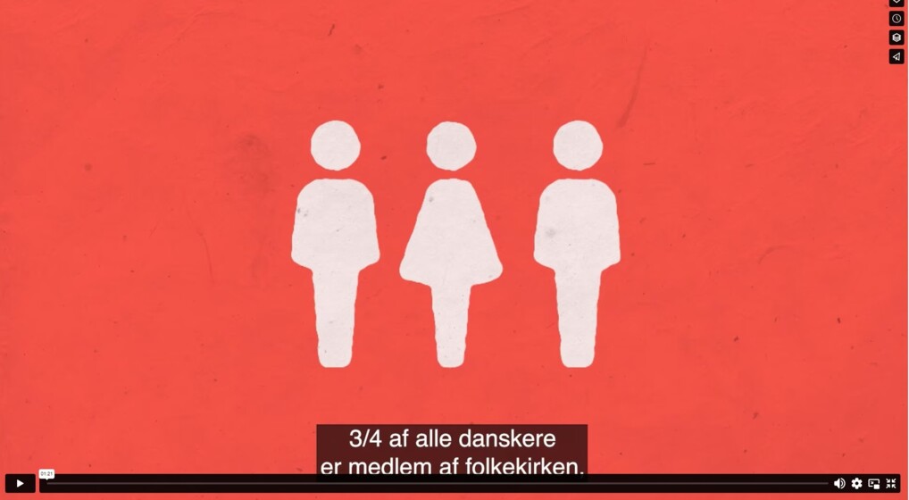 Se de tre korte film fra Grundtvigsk Forum der søger at formidle centrale træk ved den danske folkekirke til nydanskere eller udlændinge (tilgængelige på arabisk, farsi, engelsk og dansk)