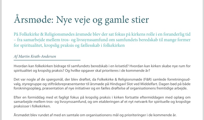 Læs artiklen af Martin Krath-Andersen om et oplæg fra årsmødet, som tog afsæt i et forskningsprojekt, som undersøger hvad der sker når yoga rykker ind i kirken.